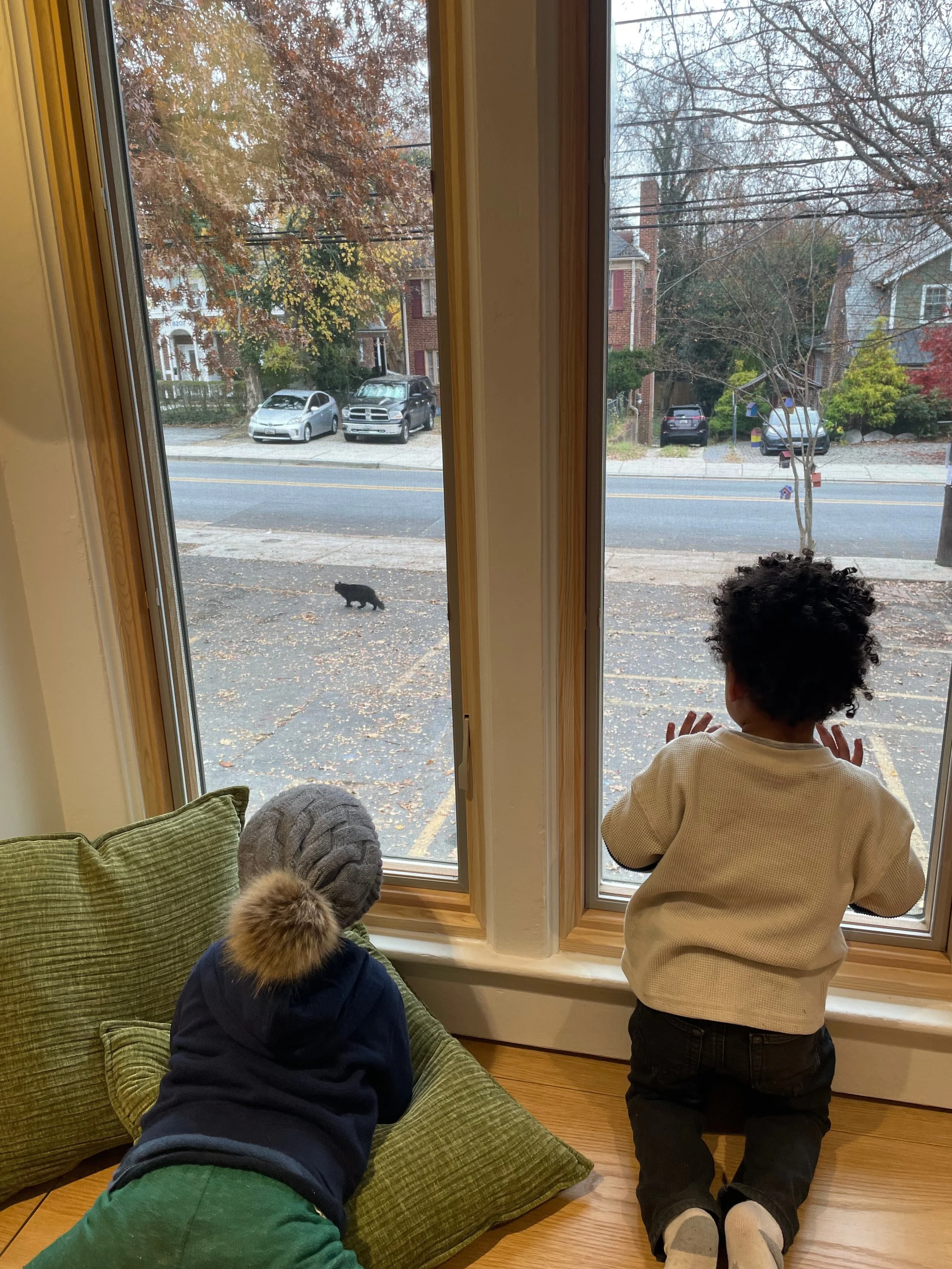 When children walk into the play yard along the stepping stone pathway to hang up their backpacks, they awaken. They feel the crisp edges of the season. Twigs snap differently, everything sounds different without the hush of overhead leaves. Breath becomes visible a wisp of a story written on air. Children gather what they find, not always with their hands but with their attention: the sudden red-fiery brightness of a cardinal, a question about wind, the rhythm of running to stay warm. We encourage the hush when we all pause to listen.